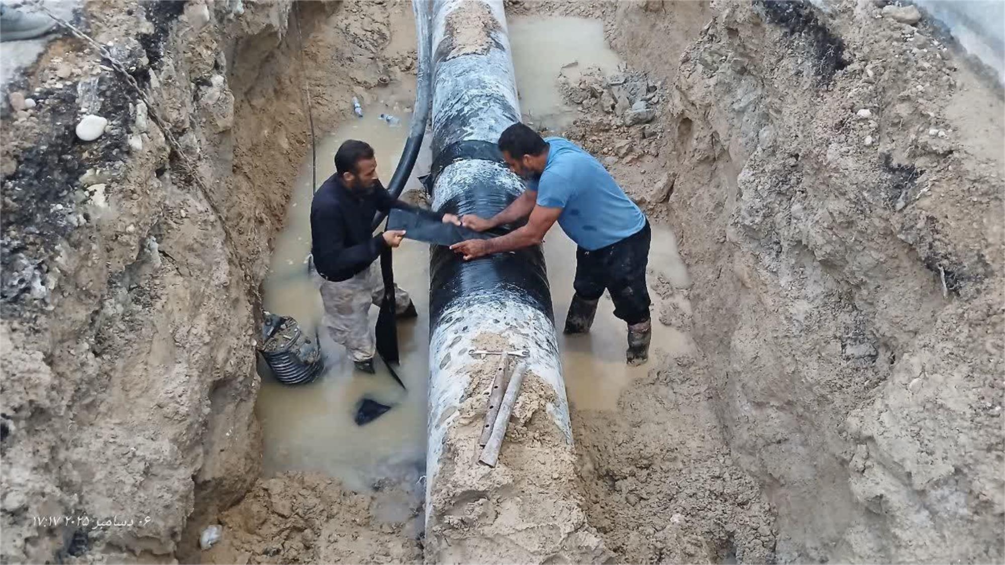 ترمیم و تعمیر ۲ مورد شکستگی خط انتقال آب در بندر امام